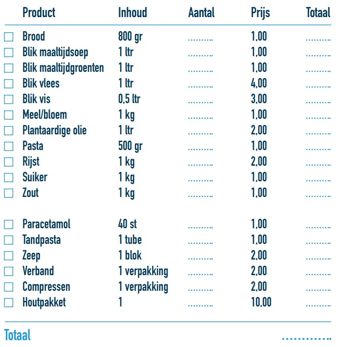Doet u mee? Vul het boodschappenlijstje in en maak het totaalbedrag onderaan het lijstje over op: